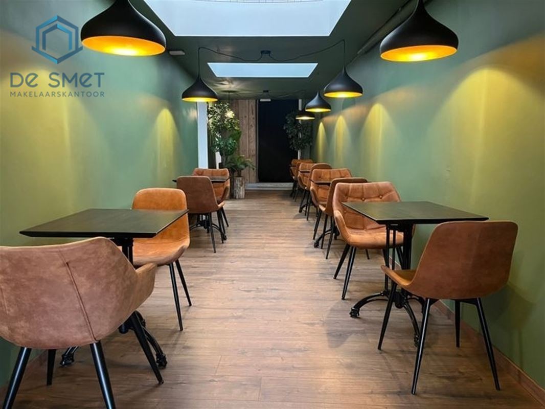 - Actuellement aménagé en établissement horeca avec bar, espace pour cuisine professionnelle, toilettes et grande salle