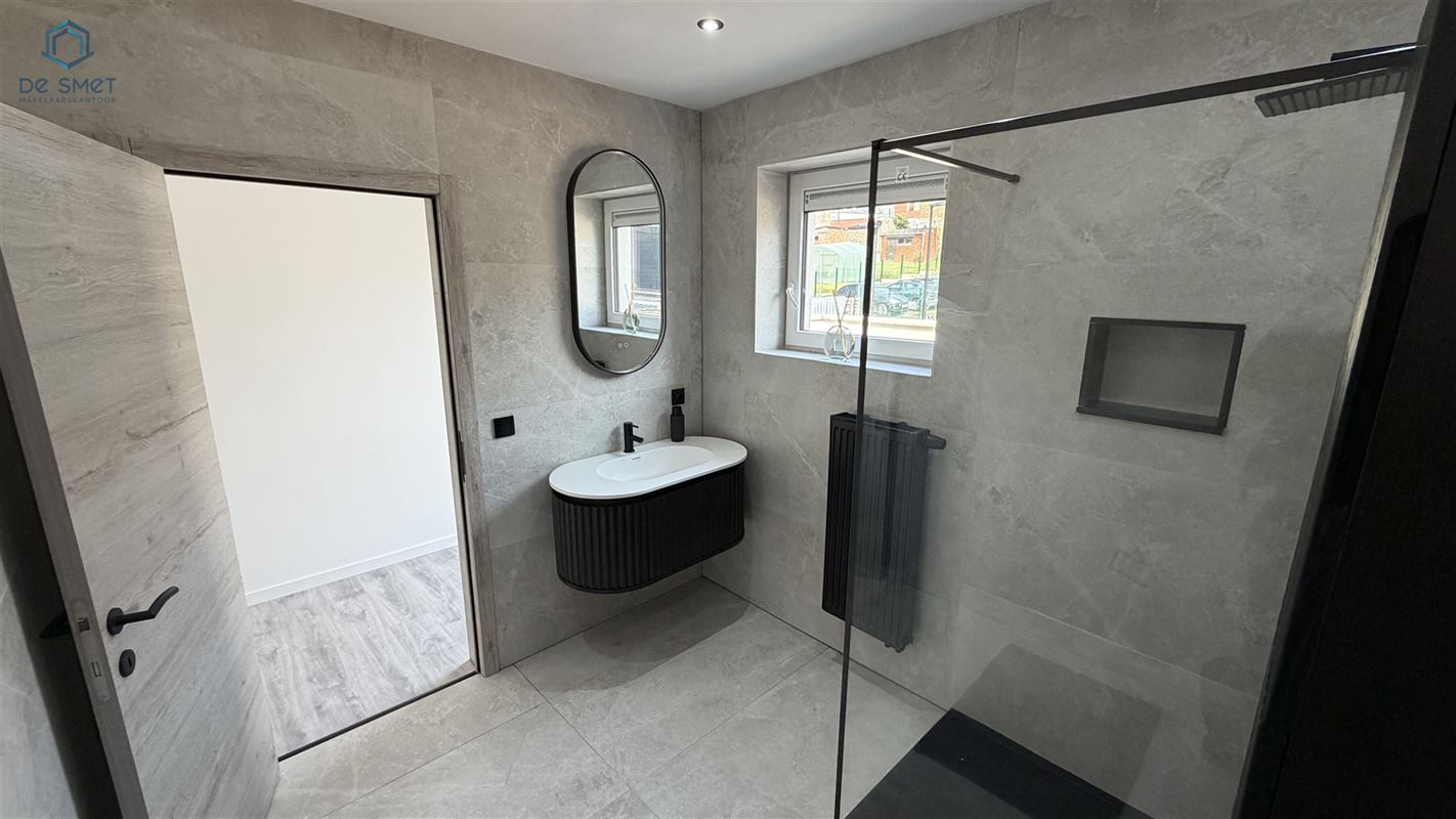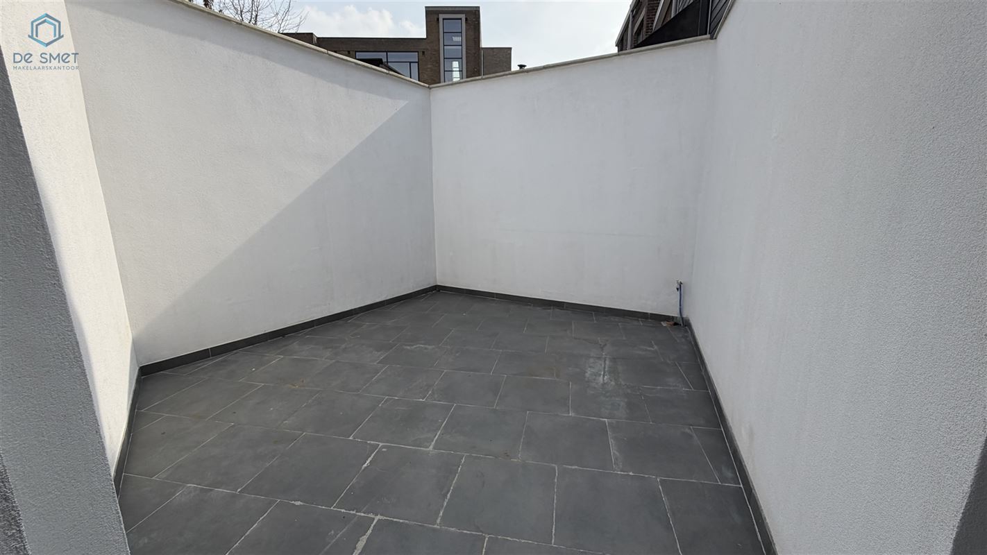 Op de eerste verdieping bevindt zich een ruime slaapkamer en een hedendaagse badkamer uitgerust met een lavabomeubel, toilet en comfortabele inloopdouche. Extra troef is het ruime dakterras, waar u in alle rust kan genieten van de buitenlucht.