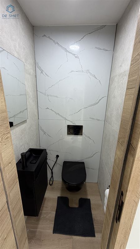 Bij het betreden van de woning komt u in een verzorgde inkomhal met stijlvolle glazen tussendeur, die toegang geeft tot de ruime en lichtrijke leefruimte. Aansluitend vindt u een moderne open keuken, volledig uitgerust met alle hedendaags comfort ideaal voor wie houdt van koken en gezellig samenzijn. Op het gelijkvloers is bovendien een gastentoilet voorzien en heeft u toegang tot een aangenaam terras, perfect om te ontspannen.