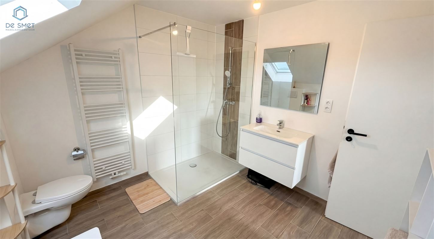Op de eerste verdieping treft men 3 slaapkamers en een badkamer voorzien van ligbad, inloopdouche, toilet en lavabomeubel.