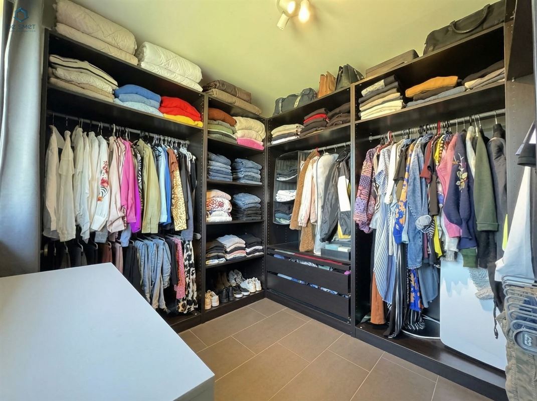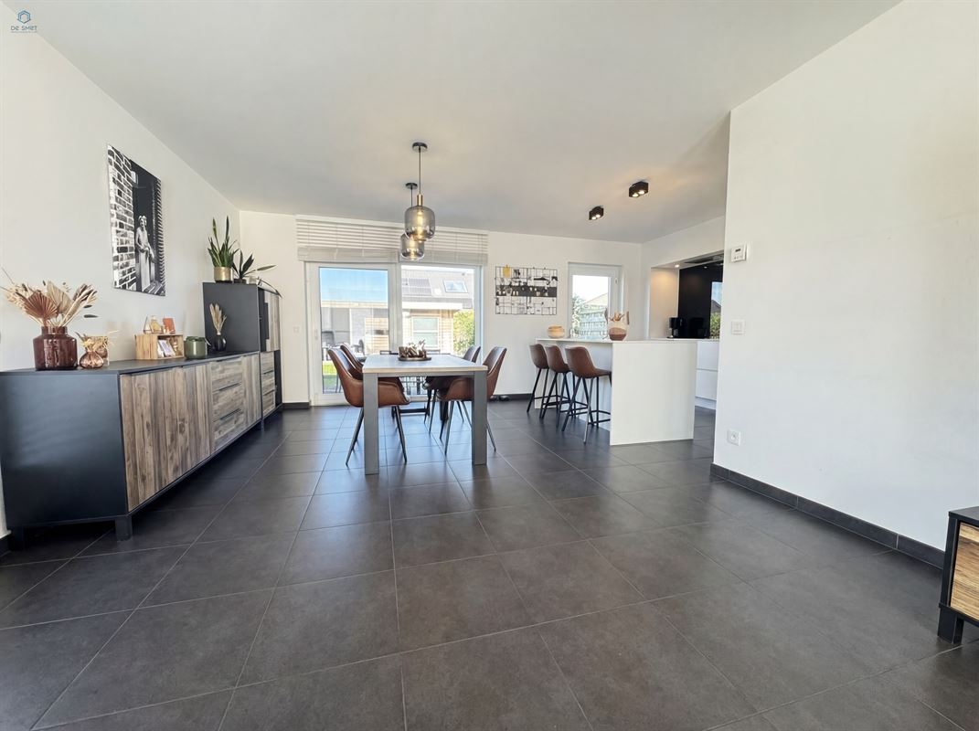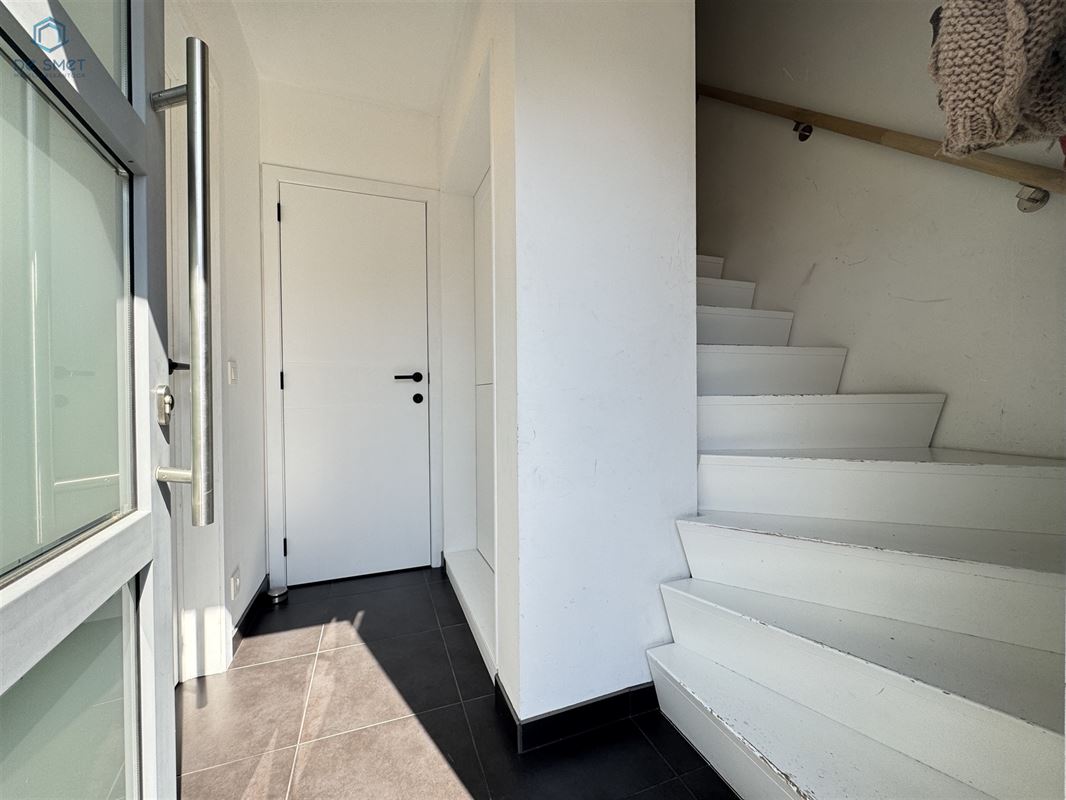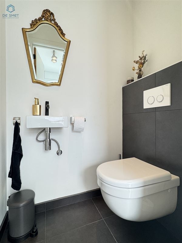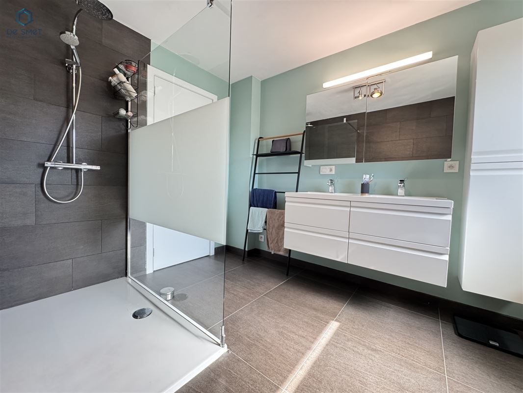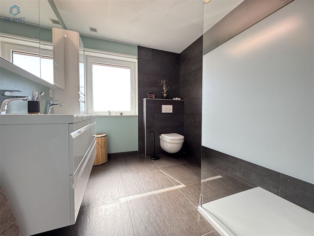 Op de eerste verdieping: nachthal met bureauruimte (mogelijk om te vormen tot 4de slaapkamer), twee ruime slaapkamers (waarvan één met dressing) en een moderne badkamer met dubbele lavabo, toilet en inloopdouche.