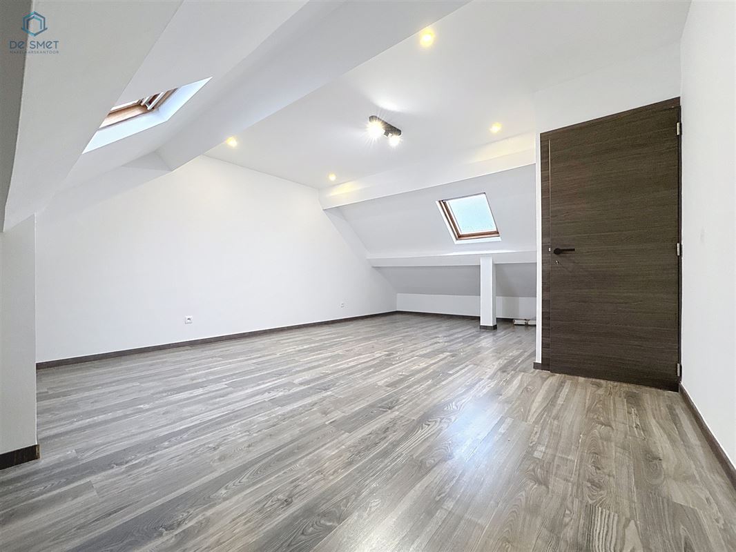 De zolderverdieping werd volledig ingericht tot een grote zolderkamer, geschikt als extra slaapkamer, bureau of hobbyruimte.