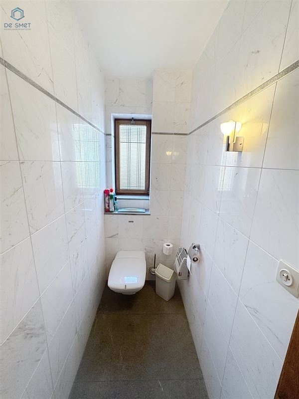U komt binnen in een ruime inkomhal met gastentoilet en vestiaire. Verder vindt u hier een bureauruimte (of extra slaapkamer), een comfortabele badkamer met ligbad en lavabomeubel, en twee grote slaapkamers. De lichtrijke leefruimte (45 m²) met prachtig tuinzicht sluit naadloos aan op de volledig ingerichte keuken.
