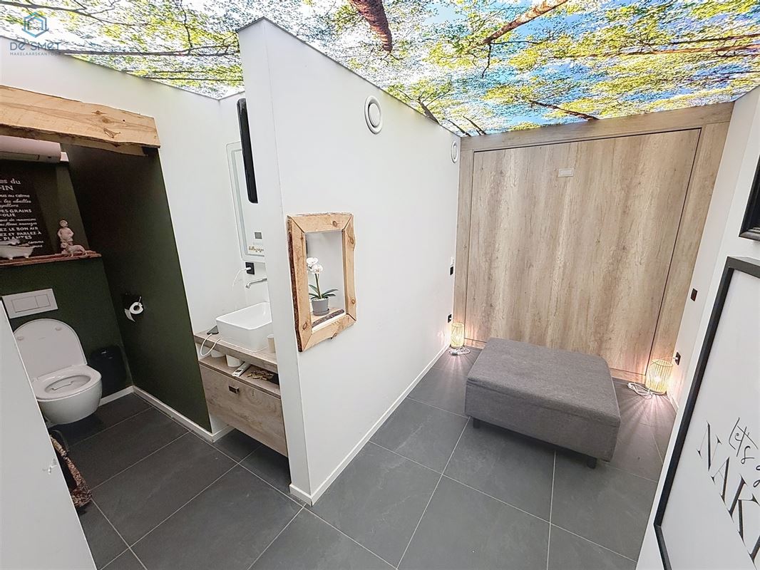 Verder vindt u op het gelijkvloers een gastentoilet, een praktische berging met aparte ingang en een extra kamer die perfect kan dienen als slaapkamer, bureau of hobbyruimte.