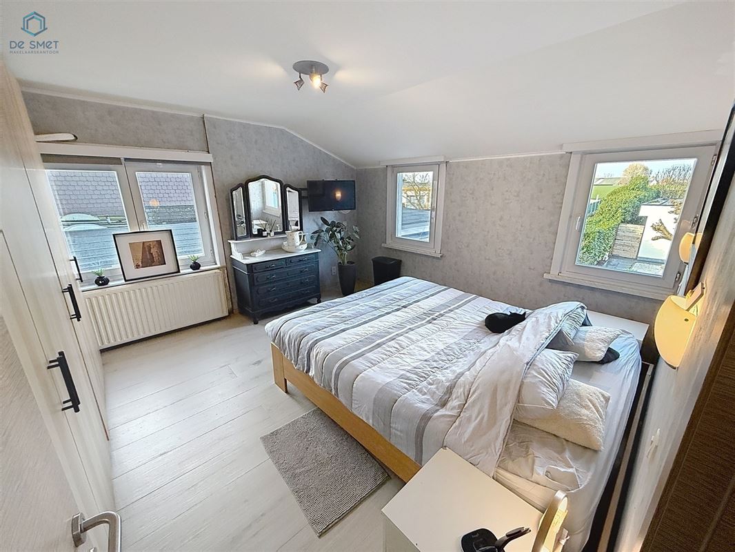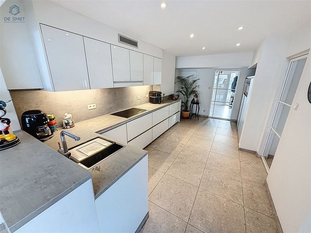 Gelijkvloers: inkomhal, ruime lichtrijke leefruimte, volledig ingerichte keuken, berging, toilet en extra kamer (slaapkamer of commerciële ruimte). Achteraan een ruime leefveranda met zicht op het terras.