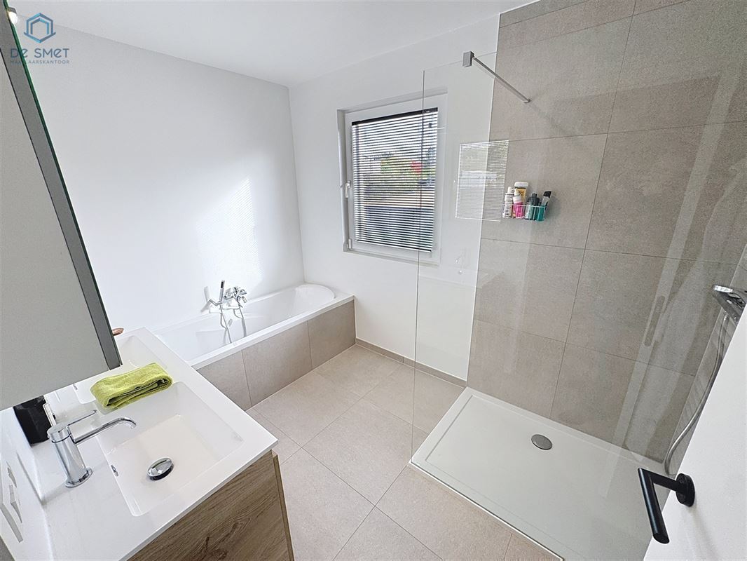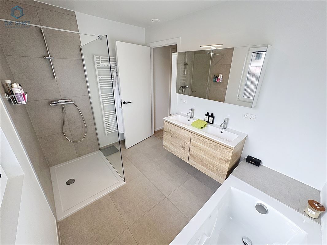 À létage, vous trouverez trois belles chambres, une salle de bains moderne avec baignoire, douche et double lavabo, ainsi quun toilette séparé.