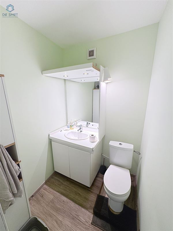 séjour lumineux, agrémenté dun puits de lumière. À larrière se trouvent un toilette séparé et une salle de bains équipée dune douche à litalienne, dun meuble lavabo et dun WC.