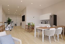 Het wooncomplex beschikt over een reeks gemeenschappelijke ruimtes die de woonervaring van de bewoners verrijken. De bewoners kunnen genieten van een gemeenschappelijk zwembad, ideaal om af te koelen tijdens warme zomerdagen. Een gemeenschappelijke fitnessruimte is beschikbaar voor degenen die een actieve levensstijl willen behouden zonder het huis te verlaten. Bovendien biedt het complex een gemeenschappelijke garage en parkeermogelijkheden, wat comfort en veiligheid voor de voertuigen garandeert. Een gemeenschappelijk solarium biedt extra ruimte om te ontspannen en te socialiseren met buren.