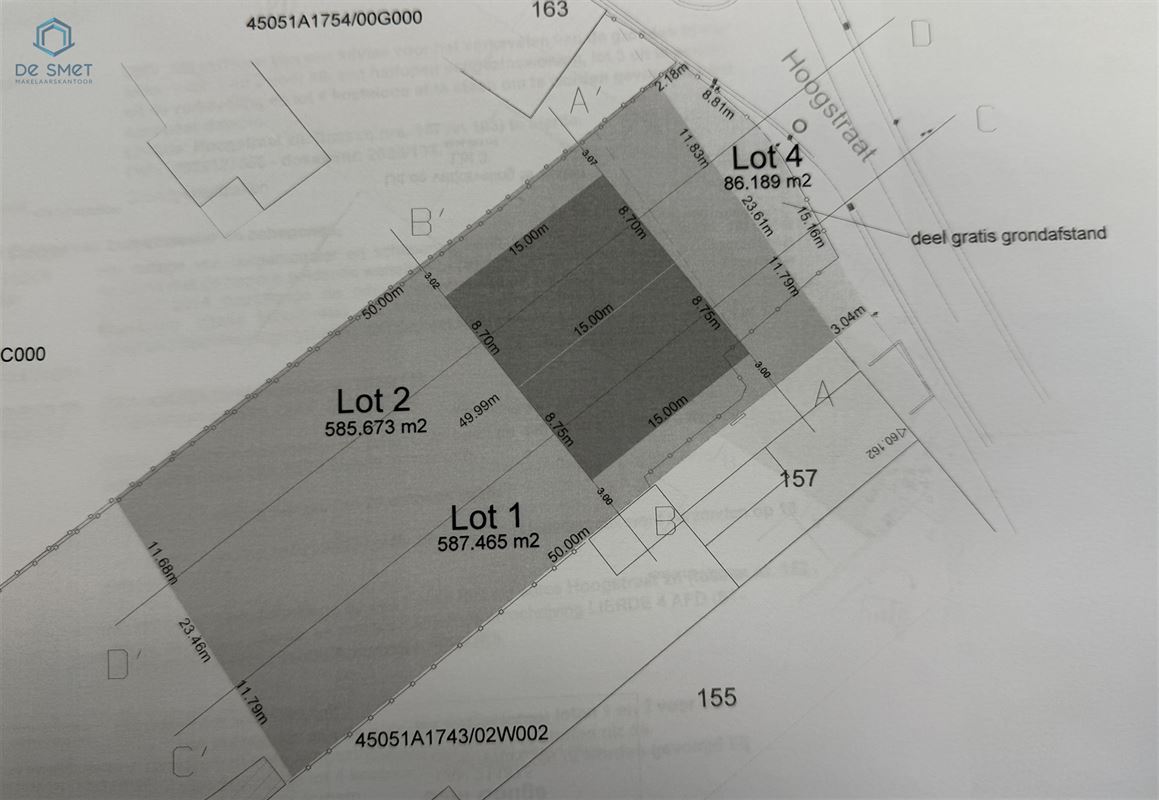 Verkaveling van 2 HOB te Lierde. Deze grond is gelegen in een zijstraat van de N8 . Breedte v